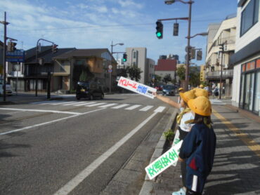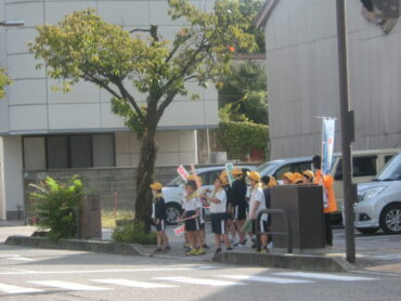 2025.9.22 4年生 4年 人波作戦 9/22 今年度の交通少年団の一員である4年生は、人波作戦に参加しました。 子供たちは、定塚交差点に立ち、元気な声でドライバーの方へ安全運転を呼びかけました。
