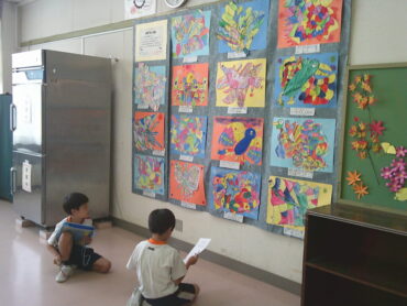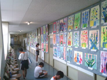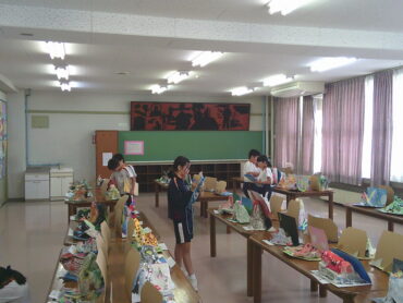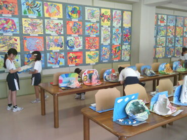 2025.10.3 全校生 作品鑑賞 10/3 子供たちは、全校児童が工夫を凝らして作り上げた図画工作科や家庭科、ものづくり・デザイン科の作品をクラスごとに鑑賞しました。 鑑賞して見つけた作品の良さや作者の思いを鑑賞カードに書き留めていました。