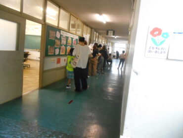 5年生のお兄さん、お姉さんたちが、やさしくサポートしてくれる中、年長児の子供たちは、静かに順番を待つ、元気に挨拶するなど、初めての場所に緊張しながらもしっかりと参加していました。