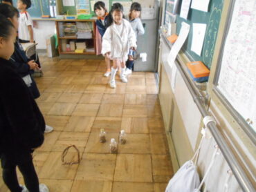 2025.11.14 1年生 1年 生活科 11/13 1年生は生活科の学習で「あきでたのしくあそぼう」に取り組みました。 秋見つけで集めたドングリや松ぼっくりを使って自分で作ったおもちゃを友達に紹介したり、遊び方を工夫したりして楽しみました。