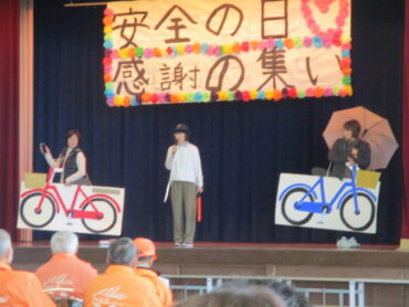 交通安全母の会の皆様からは、来年度改定される自転車の法律について寸劇で教えていただきました。