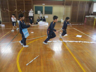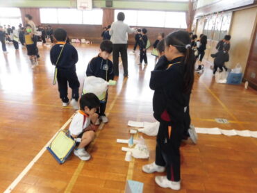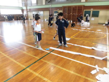 2025.11.26 1年生 2年生 2、1年 おもちゃランド 11/19 2年生は、生活科で手づくりしたおもちゃを1年生にも楽しんでもらおうと「おもちゃランド」を開きました。 体育館にたくさんのおもちゃを並べ、招待した1年生に使い方やルールを優しく丁寧に教える2年生。 1年生は、やさしいお兄さんやお姉さんの手作りおもちゃで楽しいひと時を過ごしました。