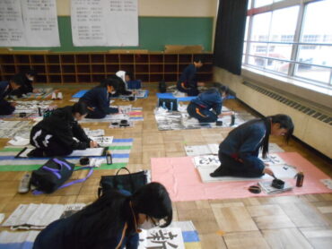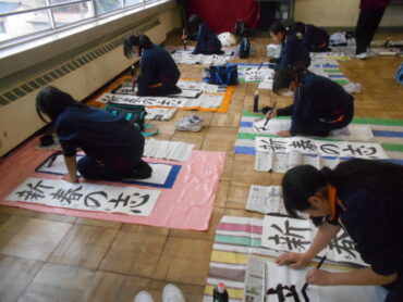 2025.12.10 6年生 6年 書初練習 12/8 6年生は、今年度初めての書初練習に取り組ました。 今年の課題は「新春の志」。 4月からは中学生となる6年生に、ふさわしい言葉です。 手際よく準備を進め、集中して練習に取り組んでいました。