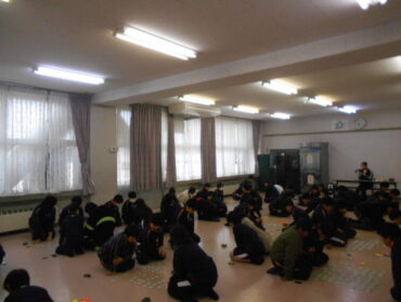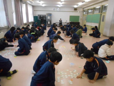 静まる校内のあちらこちらから、読み手の声と札を取る音が聞こえます。