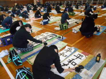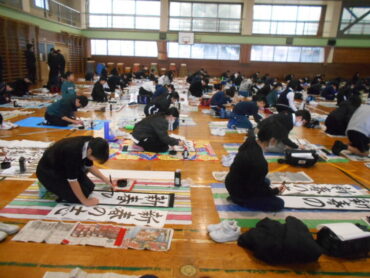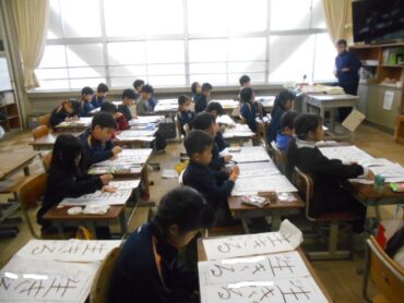 2026.1.8 1年生 2年生 3年生 4年生 5年生 6年生 全校生 書初大会 1/8 始業式の後、各学年では書初大会を行いました。 1,2年生は教室で、3,4年生と5,6年生は、それぞれ体育館で、これまでの練習の成果を出し切るよう一画一画を丁寧に心を込めて書き進めていました。