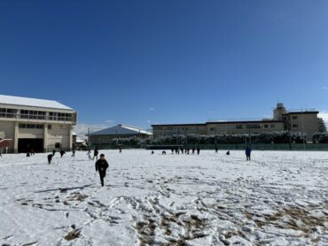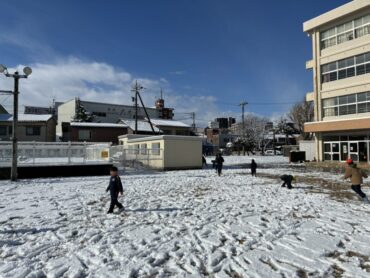 休み時間になると、子供たちはグラウンドに出て、寒さにも負けず、友達と雪あそびを全力で楽しんでいました。