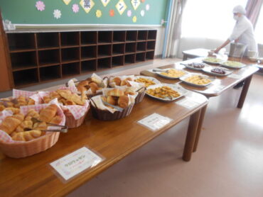 いつもとは違うビュッフェ方式の昼食です。6年生は、いつもの教室とは違った雰囲気を楽しみながら、おいしい給食をいただきました。