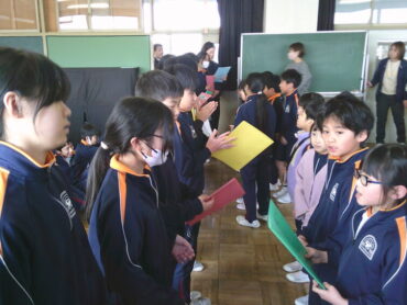 2026.2.25 1年生 2年生 6年生 1、2年生から6年生へ 招待状とプレゼント 「卒業を祝う会」に向け、1年生は招待状を2年生はプレゼントをそれぞれ6年生に渡しました。 明日はいよいよ、本番。たくさんの活動を通して高陵っ子を笑顔にしてくれた6年生へ、1年生~5年生がこれまでの感謝の気持ちと卒業に向けたエールを送ります。