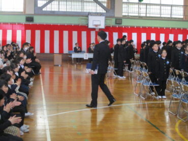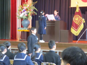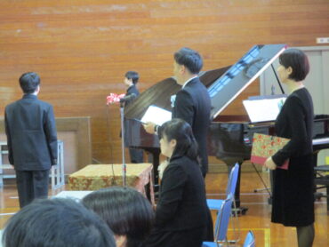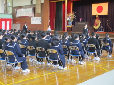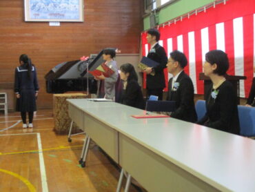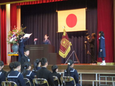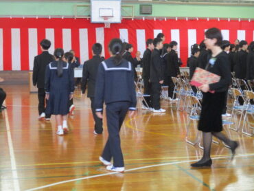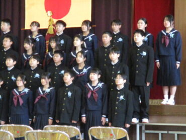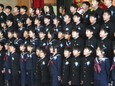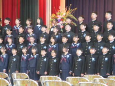 校歌斉唱では、卒業生、在校生ともに、これまでの感謝の気持ちや旅立つ寂しさ、お互いのエールなど、様々な思いが入り混じったすばらしい歌声が体育館に響き渡りました。