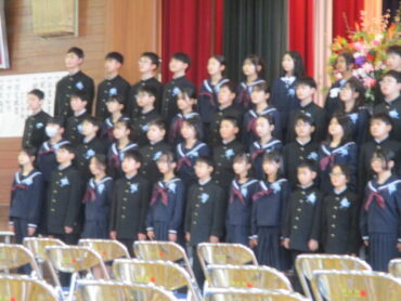 在校生は、姿勢や歌、呼びかけ、拍手で6年生の旅立ちを心を込めてお祝いしました。